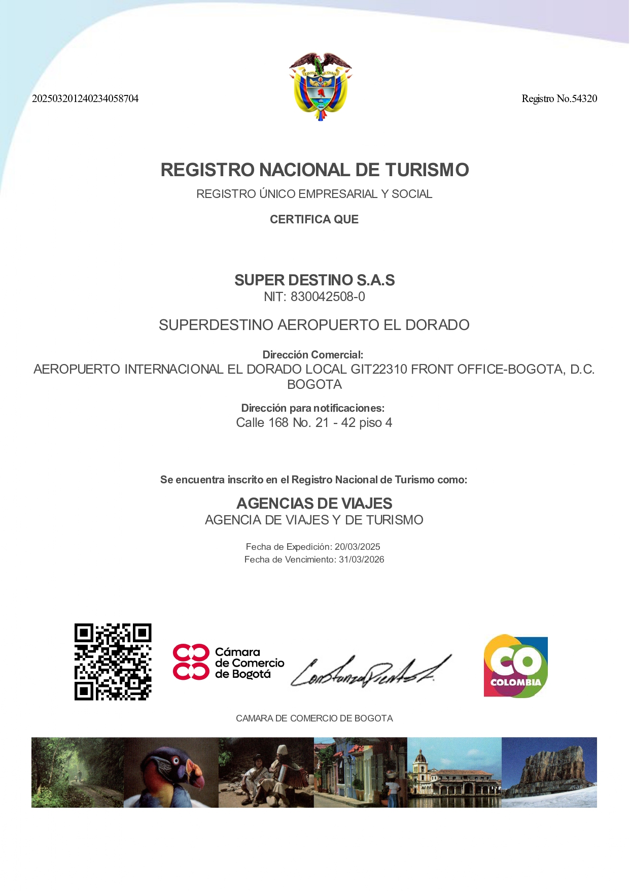 SUPERDESTINO SAS identificada con NIT 830.042.508-0, Es una Agencia de Viajes y Turismo, acreditada y regulada por la IATA (Asociación Internacional de Transporte Aéreo), con más de 20 años en el sector turístico.